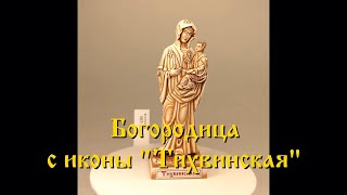 Изготовленная вручную из олова и раскрашенная под кость, миниатюра выполнена по мотивам Тихвинской иконы Божьей Матери.